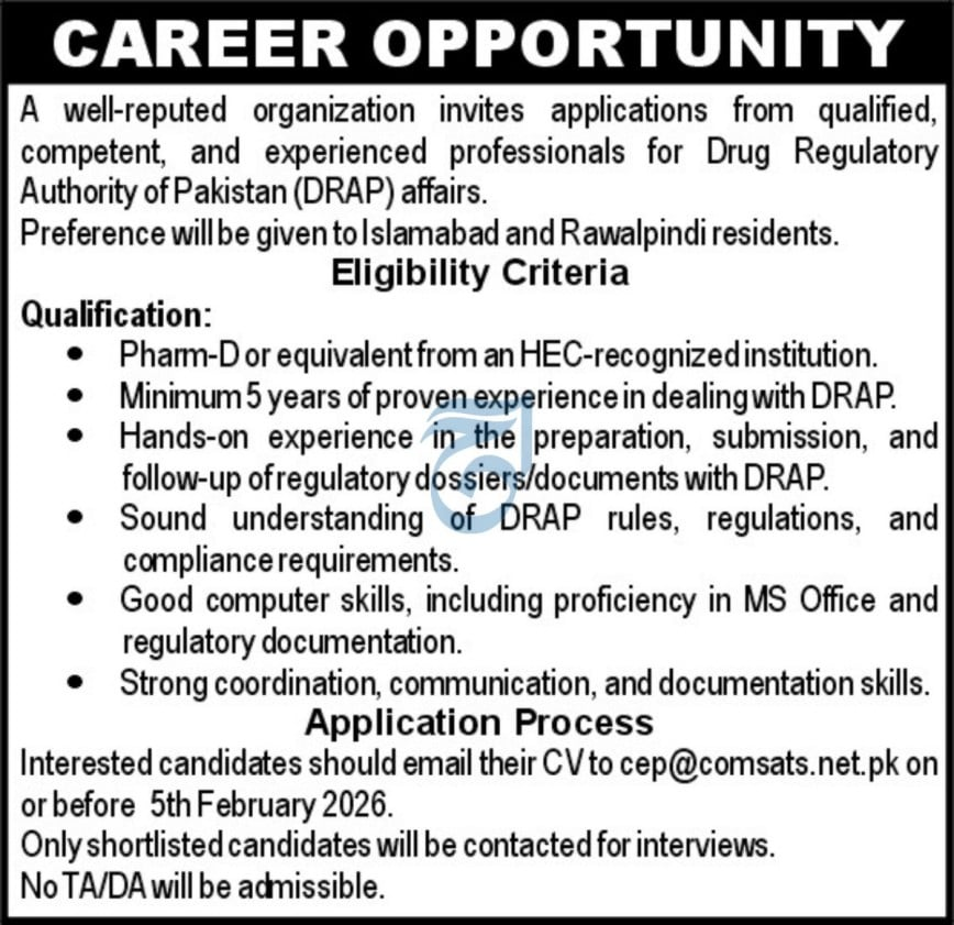 - Submission: Apply as per the instructions mentioned in the newspaper ad (published in Daily Aaj). If an online portal is specified (such as the DRAP official website or jobz.pk), ensure you upload your CV before the closing date.