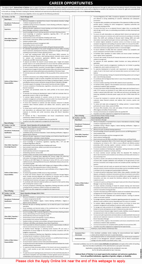 Vacancies Details of National Bank of Pakistan Jobs 2025